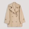بارانی کوتاه (ترنچ کت) به رنگ کرم با طراحی کلاسیک دو ردیف دکمه. یک رویه شیک و کاربردی برای فصول بهار و پاییز.